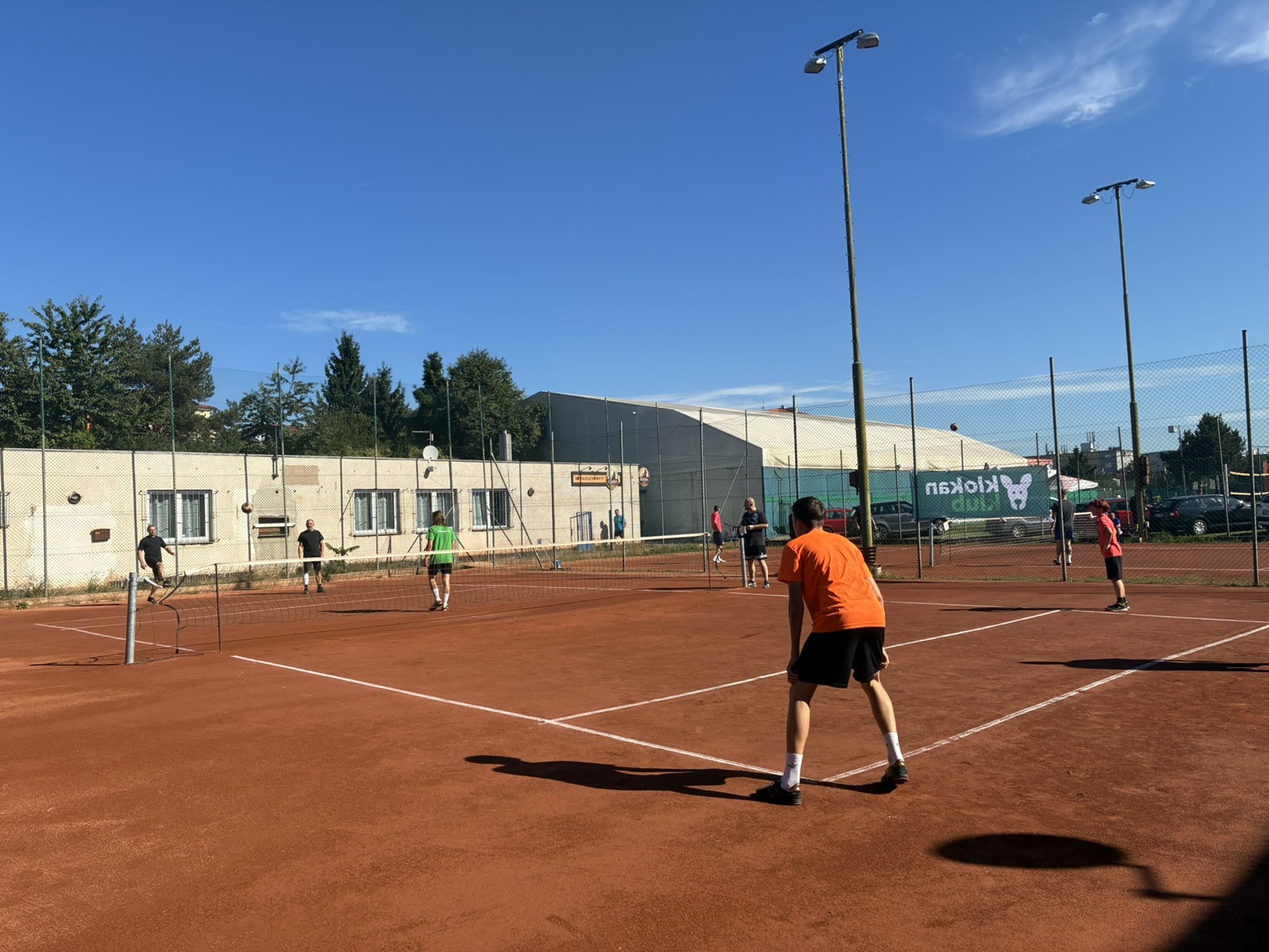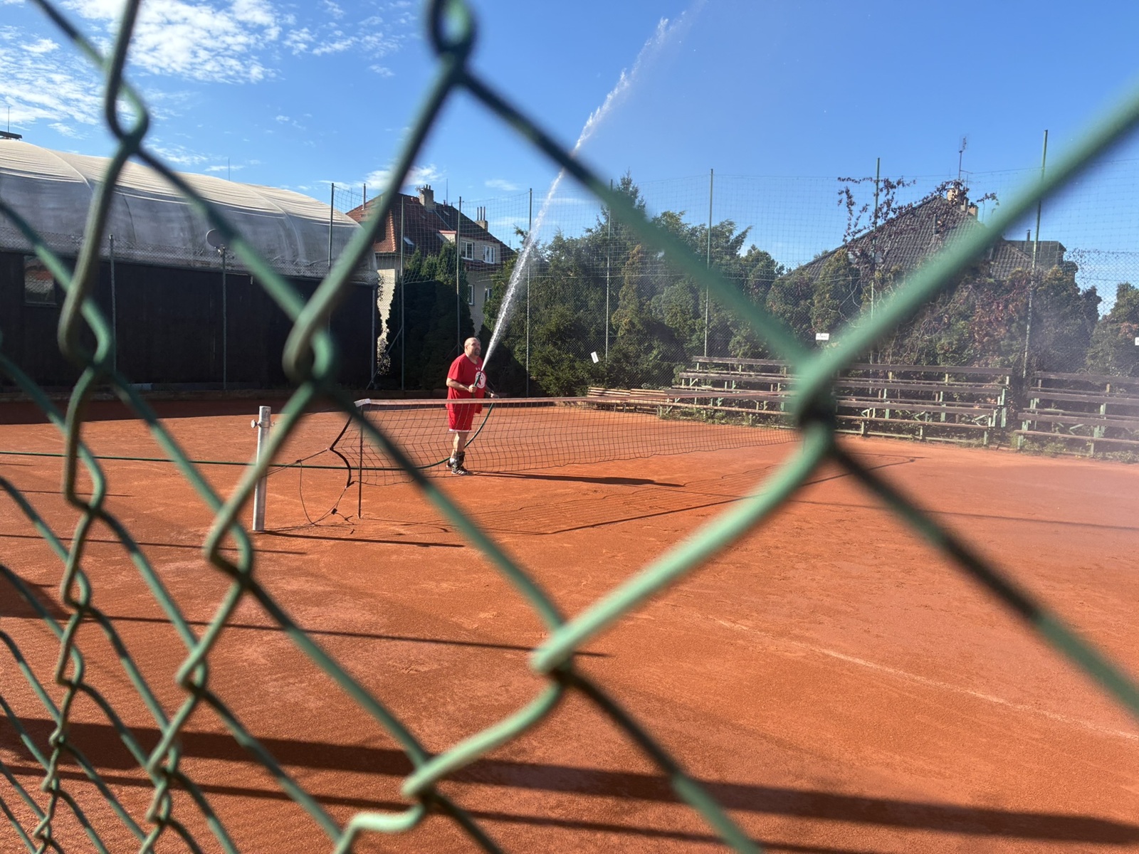 Samotný start turnaje byl posunut o téměř 40 minut. Nebylo to z důvodu deště (jako tomu bylo u beachvolejbalového turnaje na začátku června), ale slunci. Dnešní den totiž přinesl jeden z nejtepleších na konci jara. Kurty se tak musely náležitě pokropit a nalajnovat, čehož se s vervou zhostil Ondra. Po oficiálním přivítání všech zúčastněných předsedou Klokanklubu a vysvětlení pravidel hlavní organizátorkou Lukajdou proběhlo focení u vlajky Klokanklubu.