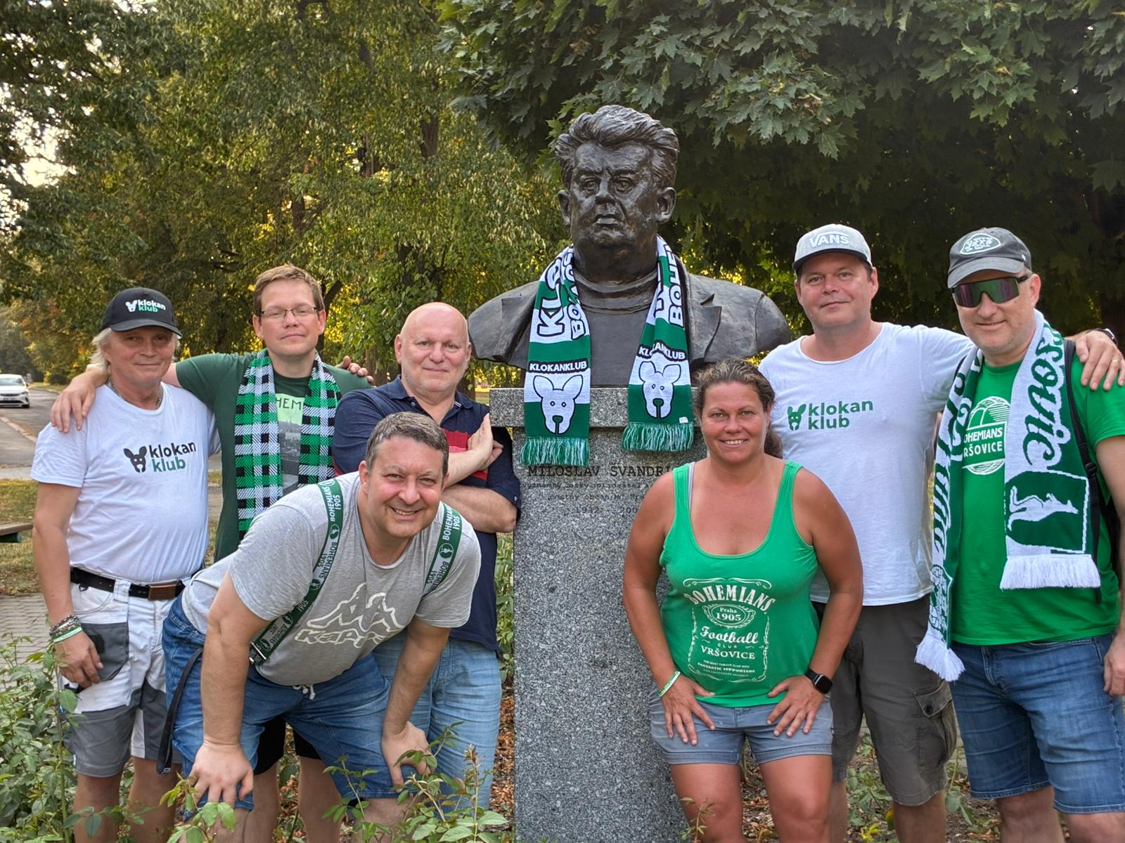 Ve čtvrtek 14.8.2025 od 17:30 hodin zorganizovala historická sekce, jako každý rok, vzpomínkovou akci "Pieta za Miloslava Švandrlíka". Připomněli jsme si 93 let od narození známého spisovatele, humoristy a jednoho ze spoluzakladatelů původního Klokanklubu. Akci zahájil předseda fanklubu krátkým projevem, ve kterém mj. zavzpomínal i na další dva klokany, kteří nás letos navždy opustili - pana Viktorína Šulce a legendárního záložníka pana Pavla Chaloupku. Po minutě ticha následovalo přečtení mistrovy povídky "Nejsem na jména!" z roku 1960, kterého se tentokrát zhostil Tomáš Skácel. Ještě před samotným položením slavnostní kytice k bustě M. Švandrlíka proběhla očista pomníku. Po nezbytném společném fotografování jsme akci formálně ukončili a zamířili na nedalekou zahrádku restaurace Na Rychtě, abychom se v úmorném vedru osvěžili zlatavým mokem z nabídky kácovského pivovaru.