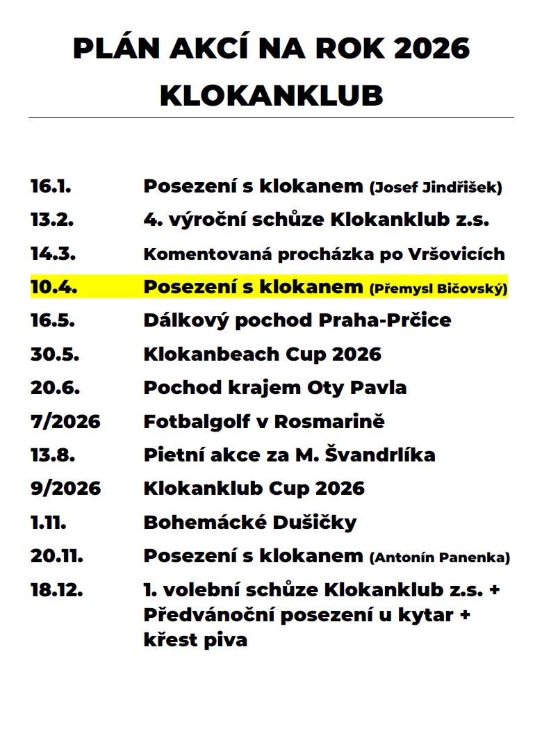 V souladu s čl. III odst. 8 stanov Klokanklubu z.s. tímto vyzýváme všechny členy, kteří do dnešního dne nezachovali své členství pro rok 2026, aby tak učinili nejpozději do 15. 12. 2026. Pokud tak neučiní, bude v souladu s čl. III Členství odst. 5 písm. d) jejich registrace jako členů Klokanklubu z.s. zrušena, tedy bude přistoupeno k jejich vymazání z databáze členství Klokanklub z.s.