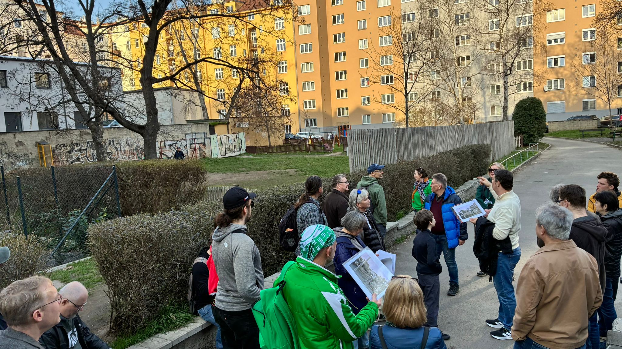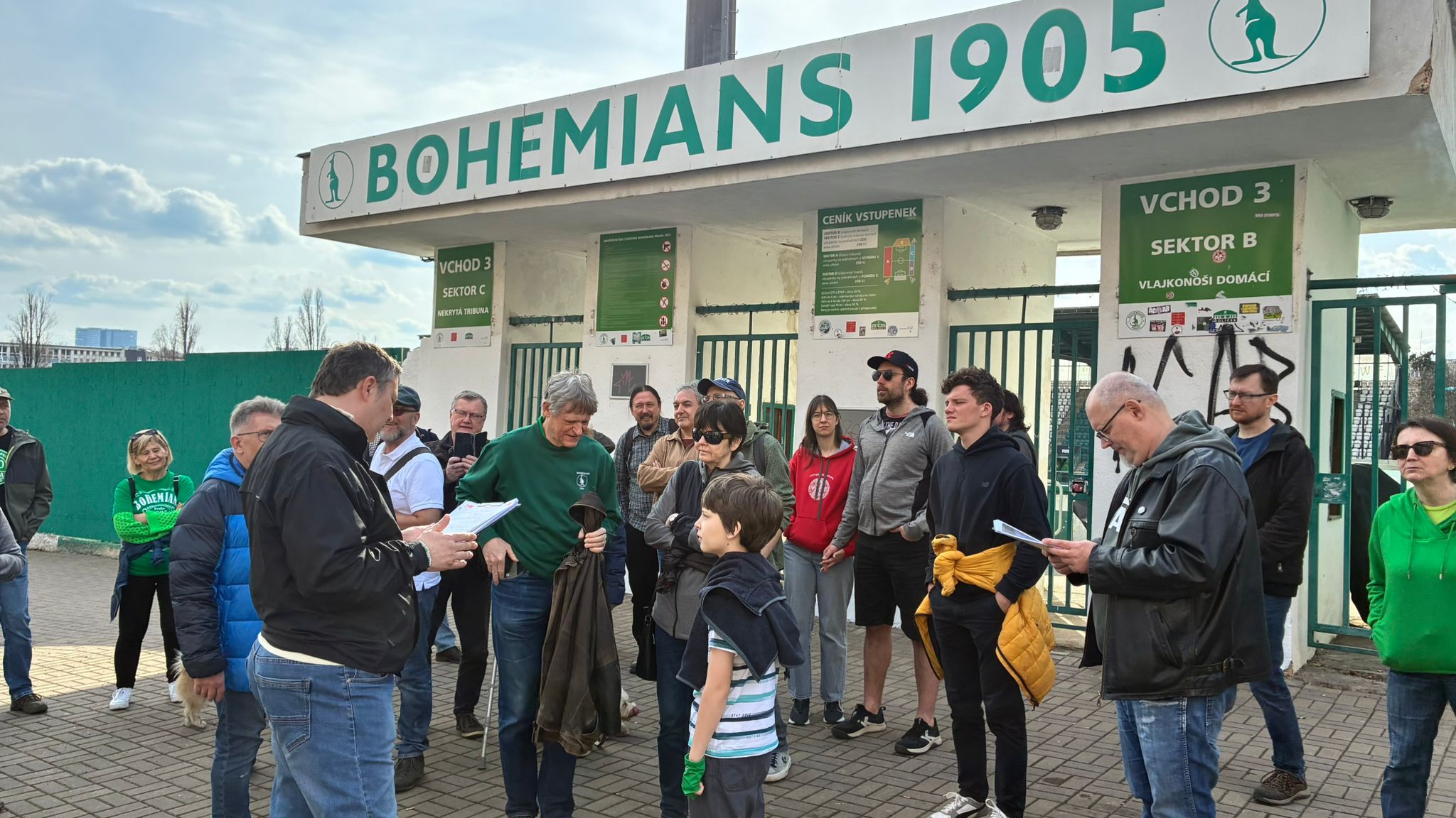 V sobotu 14.3.2026 uspořádala historická sekce komentovanou procházku po Vršovicích zaměřenou na historii vršovické kopané. Sraz byl naplánován ve 14 hodin před naším svatostánkem - Městským stadionem Ďolíček (Dannerův stadion Bohemians). Poněvadž akce měla ze strany klubu Bohemians velké promo (za což moc děkujeme!), procházku si nenechalo ujít na 33 fanoušků nejenom zelenobílých barev! Přivítání obstaral předseda Klokanklubu, které účastníky seznámil s harmonogramem vycházky. Poté se už slova ujal, při krásném slunečném počasí, na téměř 2,5 hodiny historik a skvělý vypravěč Tomáš Skácel.