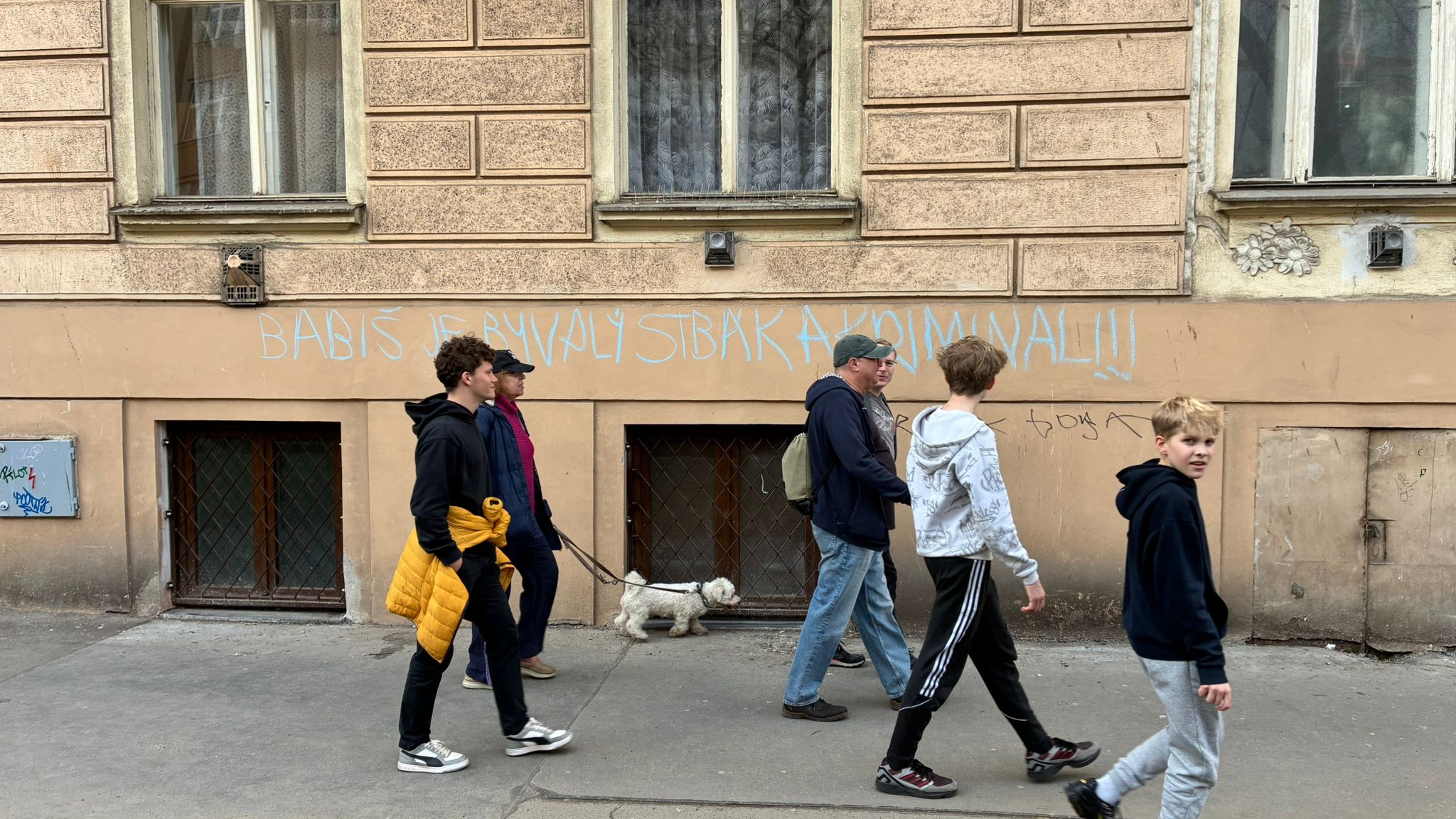 Procházka byla rozdělena na třináct zastavení a hned při té první nás překvapil příjezd klubového autobusu Bohemians s hráči B-týmu. Ti bohužel v dopoledním zápase 3. ČFL prohráli v Plzni 0:1 s místním Petřínem.